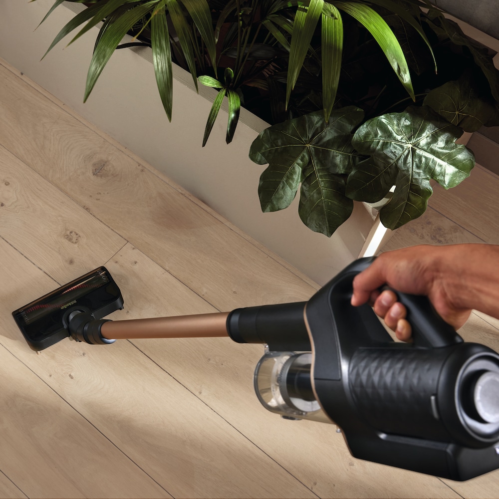 Triflex, onze steelstofzuiger met uitstekende zuigkracht dankzij de geavanceerde batterij- en motortechnologie. Voor blijvend krachtige prestaties op elke ondergrond. Dankzij het handige, lichte 3-in-1 ontwerp beweeg je soepel door je huis, zodat je elke uitdaging met gemak aanpakt. Bovendien vangt het geavanceerde filtersysteem stof en allergenen op, wat zorgt voor schonere lucht in je huis.
