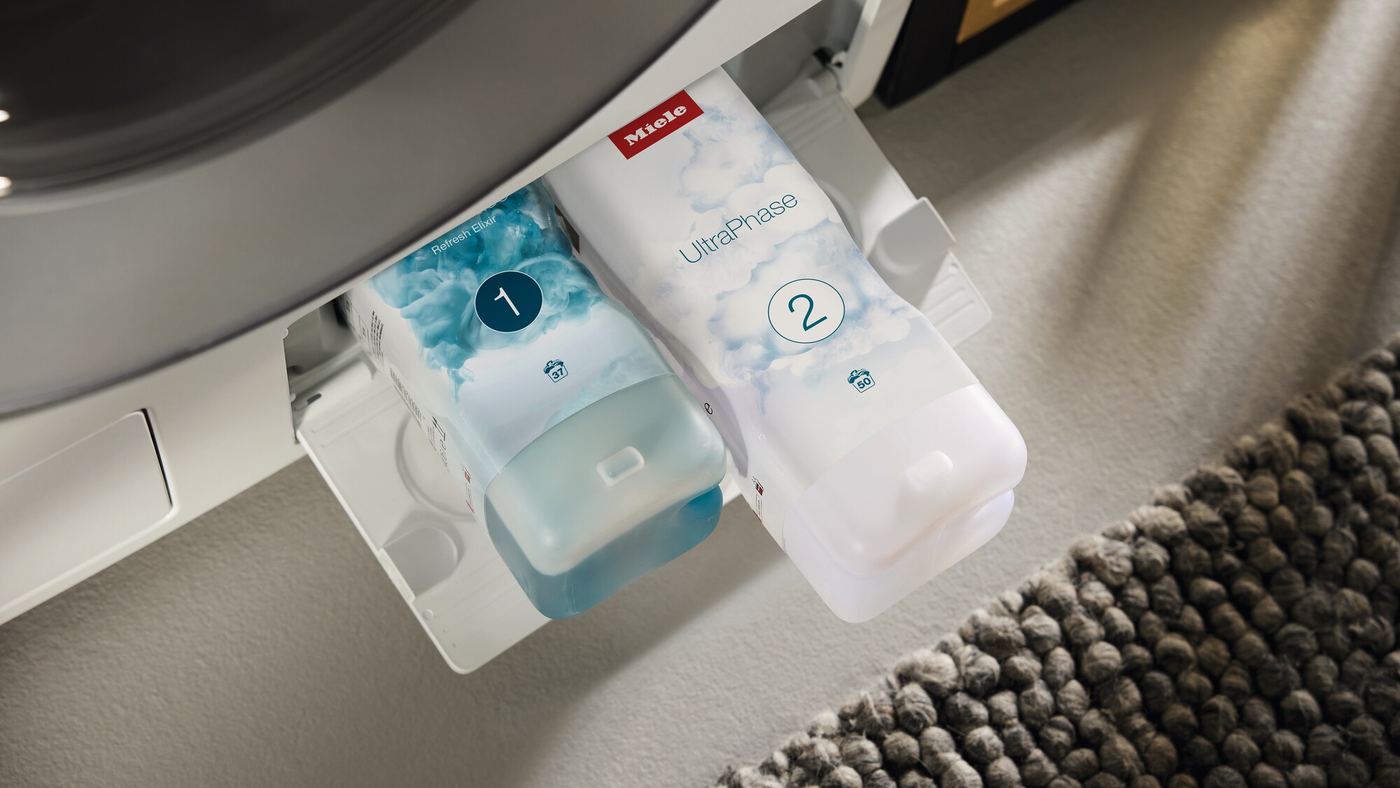 Met UltraPhase gebruik je nooit meer te veel wasmiddel. Geniet van ultiem gemak en uitstekende vlekverwijdering voor zowel gekleurde als witte was, zelfs bij lage temperaturen. En ervaar het perfecte samenspel van UltraPhase 1 & 2, speciaal ontwikkeld voor TwinDos, het automatische doseersysteem van Miele.