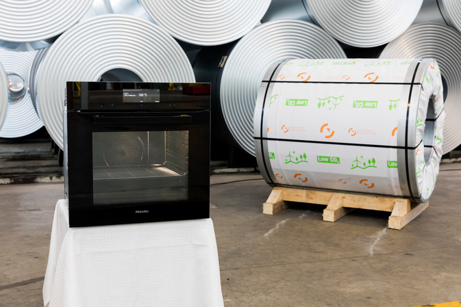 Miele gebruikt vanaf november 2021 - maandelijks 24 ton CO₂-arm staal van Salzgitter AG en verwerkt deze in de afdekplaat voor fornuizen en ovens. De CO₂-uitstoot tijdens het fabricageproces van dit staal wordt met meer dan 66% verminderd door gebruik te maken van duurzame energiebronnen en hergebruik van staalschroot. Hiermee zet Miele een volgende stap in de verdere vermindering van de uitstoot van ingekochte goederen en diensten. Momenteel test Miele het potentieel van het ‘groene staal’ voor het gebruik ervan in andere Miele-apparaten.