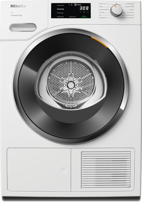 - 6.Tijdbesparing berekend in vergelijking met Miele drogers zonder EcoSpeed met dezelfde belading en een vergelijkbare energie-efficiëntie. Getest in het programma “Katoen” met volledige belading.