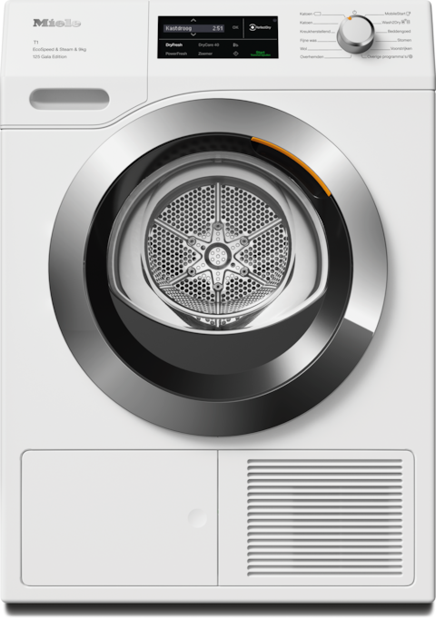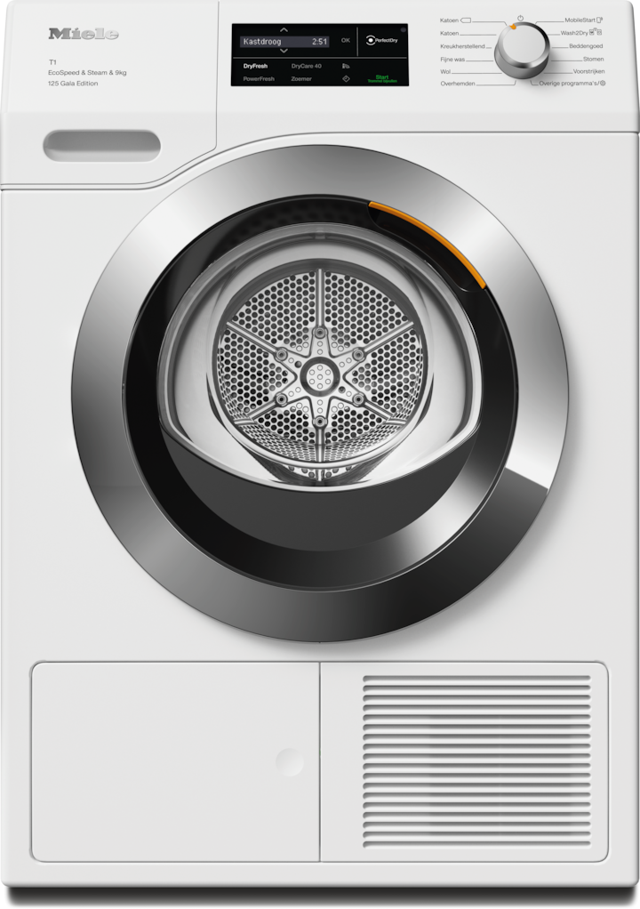 - 10.Tijdens de ontwikkelingsfase van de series T1 / T2 drogers heeft Miele modellen en kernonderdelen getest in 5000 droogcycli (= 5 droogcycli per week gedurende 50 weken per jaar) in verschillende programma's. Meer: miele.com/20years