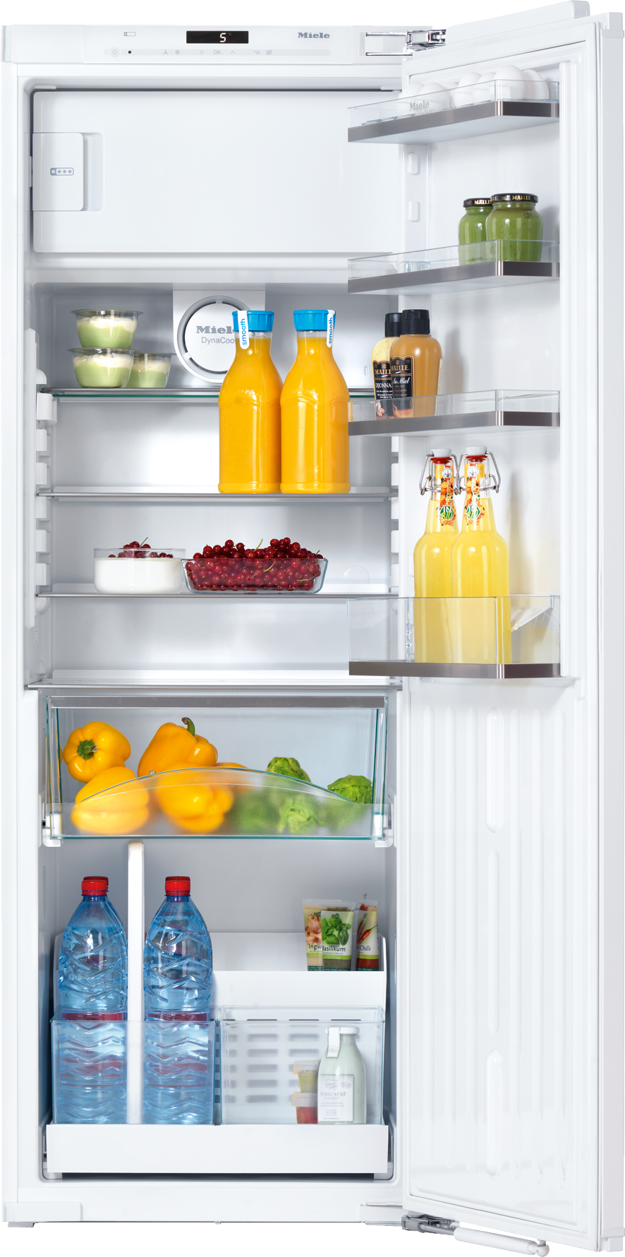 Snel overzicht: De afneembare, magnetische etiketten bevinden zich aan de voorkant van de flessenhouders.