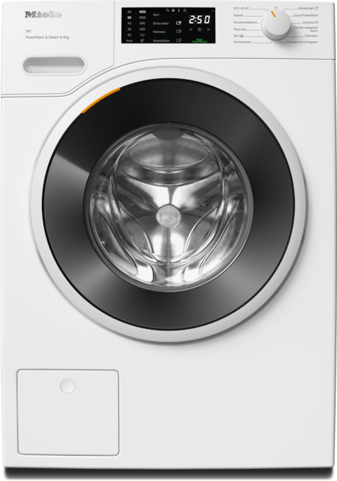 - 10.Tijdens de ontwikkelingsfase van de wasmachineseries W1 / W2 heeft Miele de modellen en kernonderdelen getest in 5000 wascycli (= 5 wascycli per week gedurende 50 weken per jaar) in verschillende programma's. Meer: miele.com/20years
