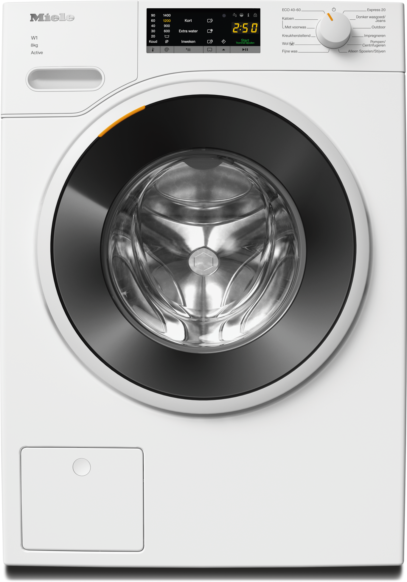 - 7.Tijdens de ontwikkelingsfase van de wasmachineseries W1 / W2 heeft Miele de modellen en kernonderdelen getest in 5000 wascycli (= 5 wascycli per week gedurende 50 weken per jaar) in verschillende programma's. Meer: miele.com/20years