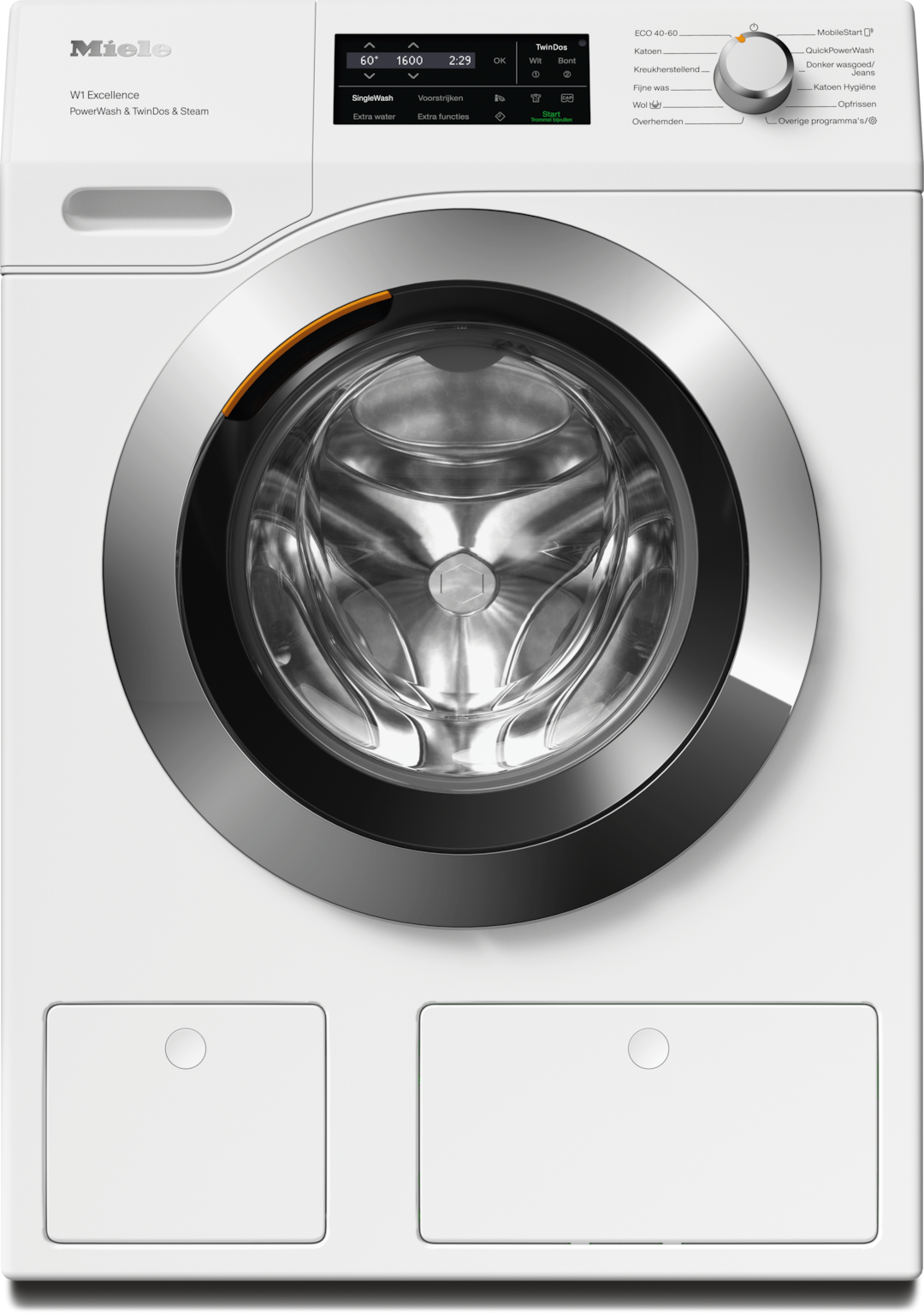 - 14.Tijdens de ontwikkelingsfase van de wasmachineseries W1 / W2 heeft Miele de modellen en kernonderdelen getest in 5000 wascycli (= 5 wascycli per week gedurende 50 weken per jaar) in verschillende programma's. Meer: miele.com/20years