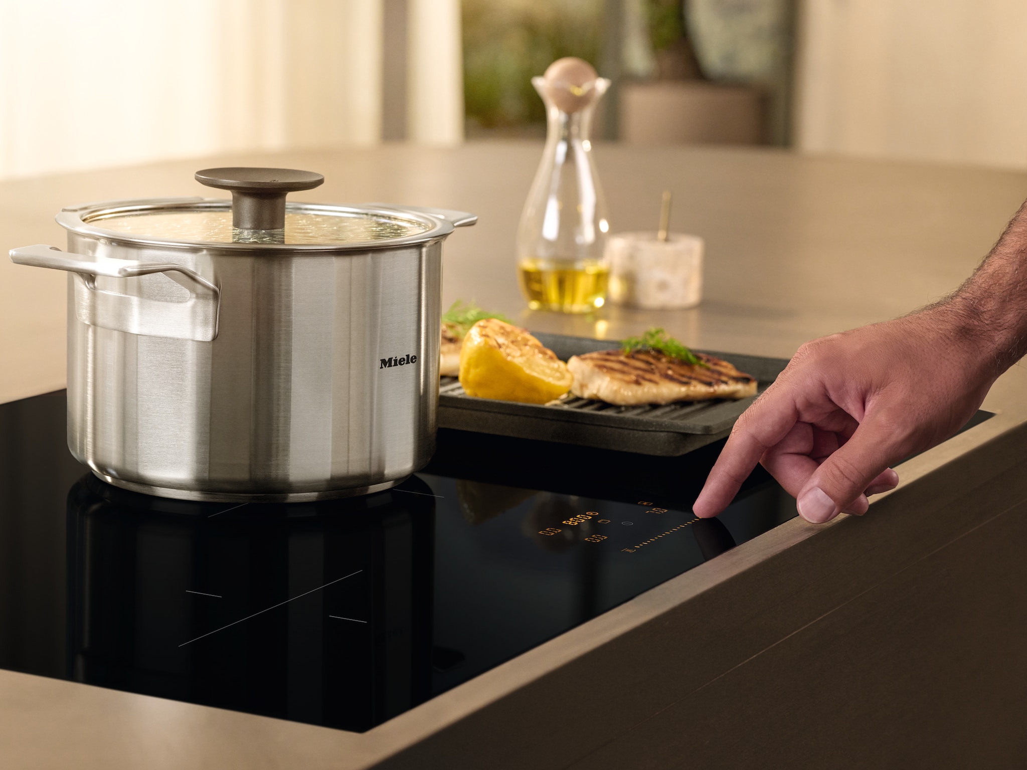 Met een centrale schuifregelaar heb je een overzicht van alle kookzones en vermogensstanden en kun je ze nauwkeurig regelen.