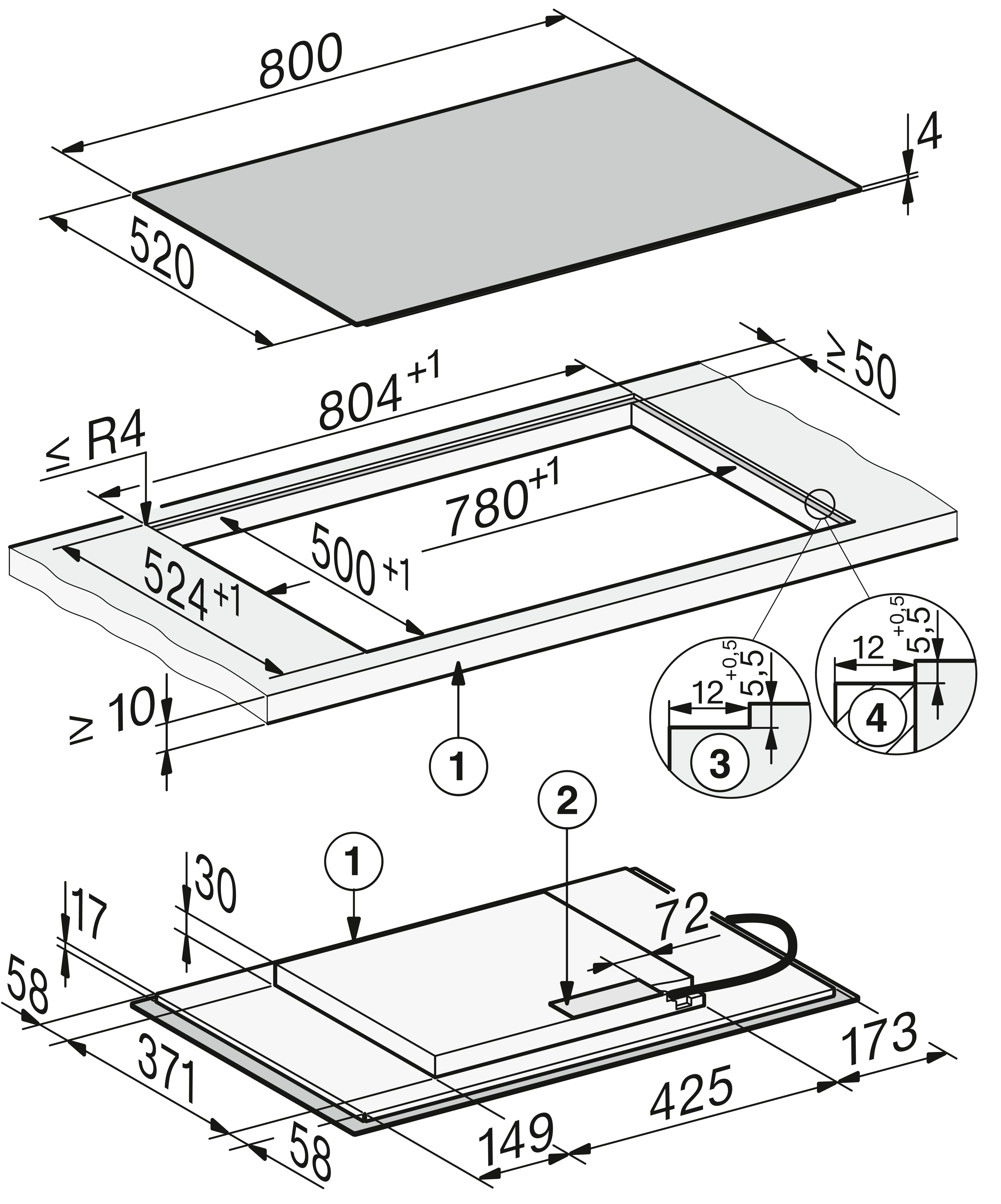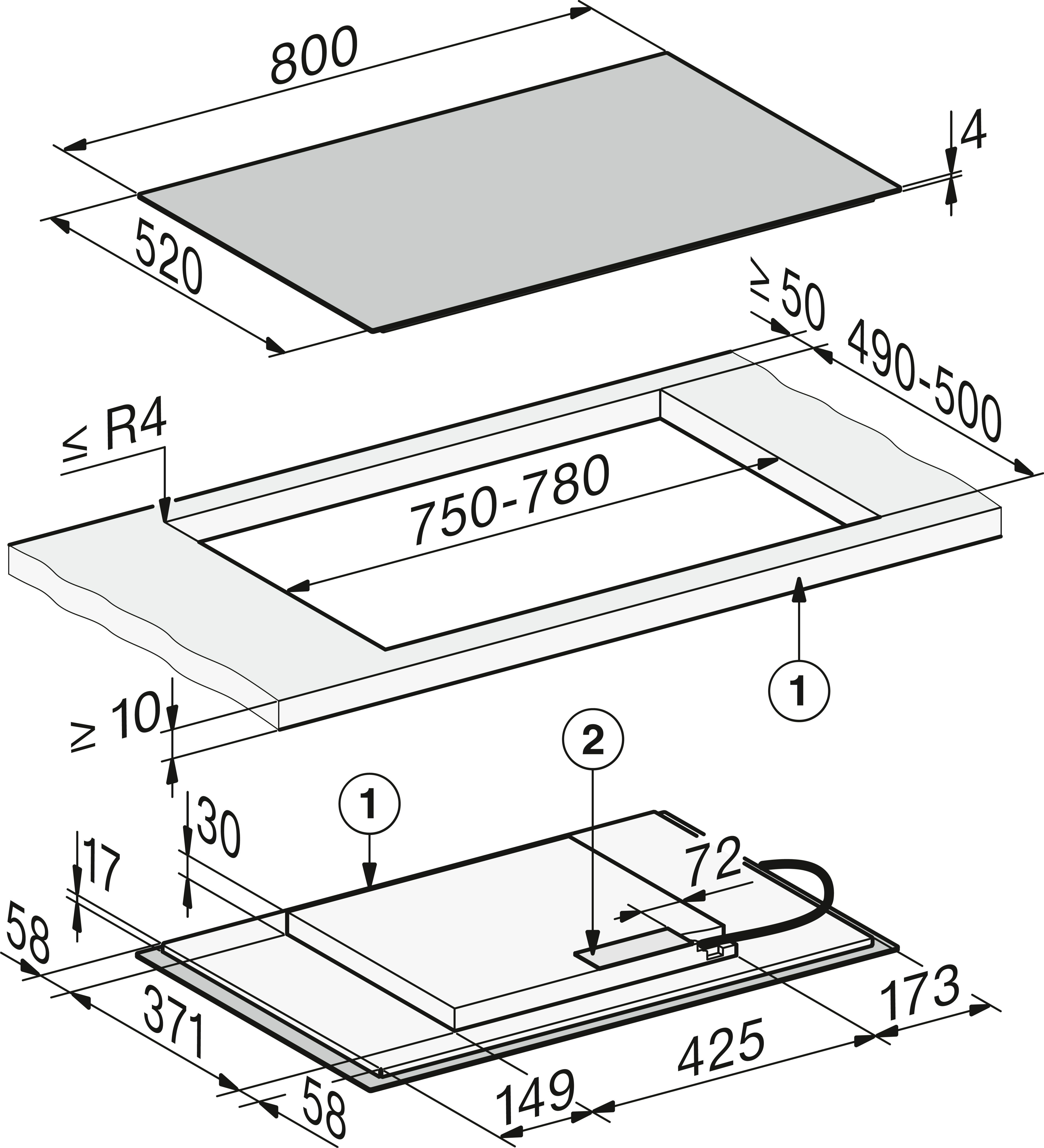 - In 800 mm breed voor integratie in of plaatsing op het werkblad