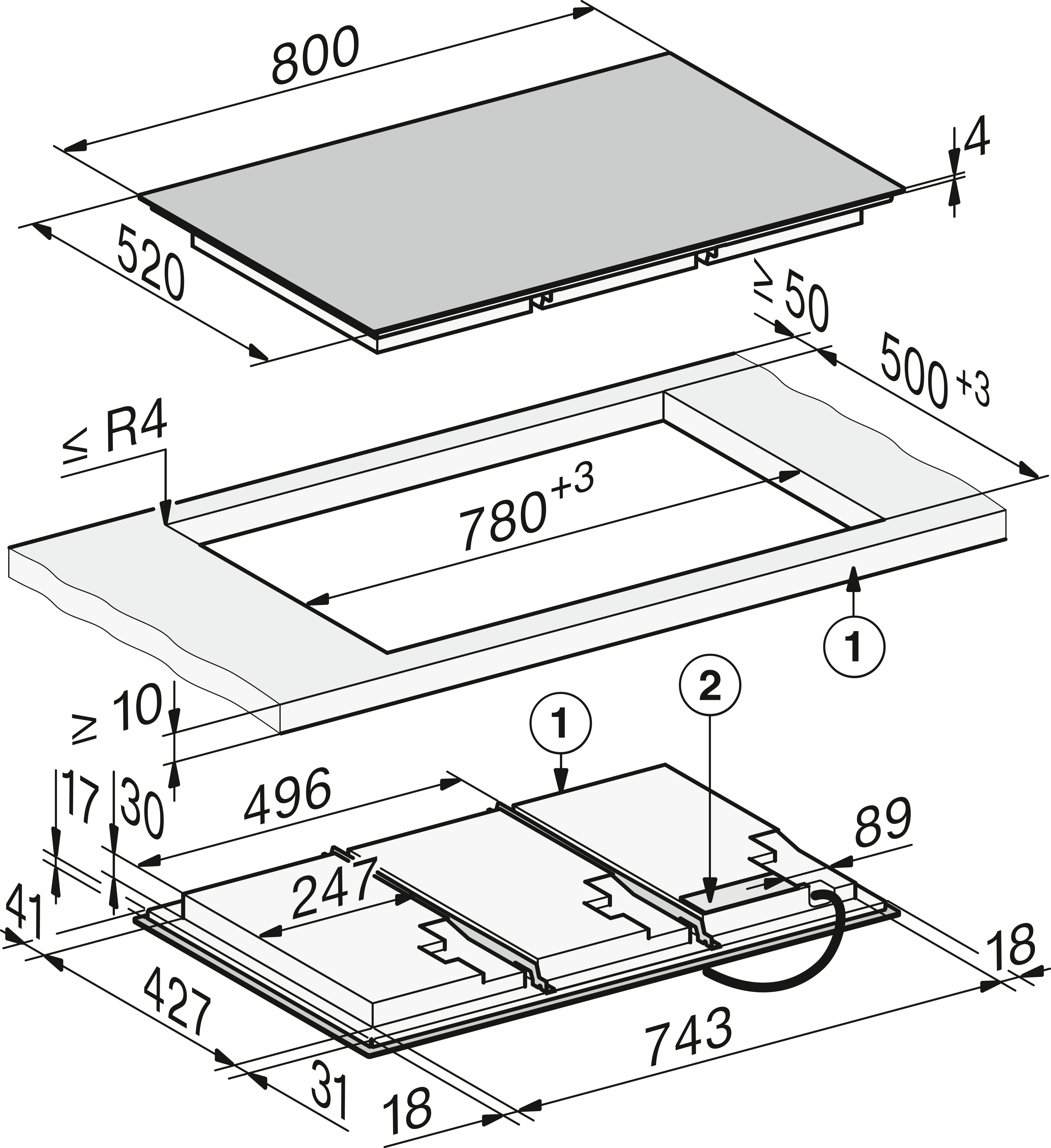 - In 800 mm breed voor integratie in of plaatsing op het werkblad