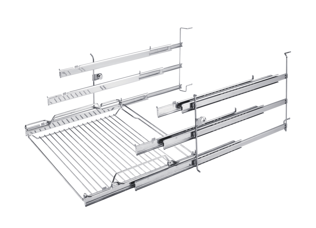 bakplaten en roosters uitnemen met volledig uittrekbare geleiders.